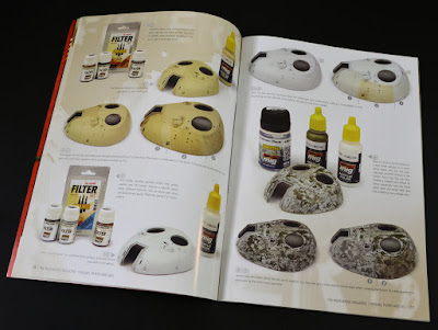 The owner of the publishing hose, Mr Mig Jimminez is first up, he is featured a lot in this issue which is great from a modeller's perspective. His work is the reason many people buy into this brand, the image and it's products. The intro focusses on his work with washes and filters from many years ago and how he sees their use changing in that time to the present. Also an introduction on oils and his new Oilbrusher series is discussed.In a focus on filters, we see several pages of neat practical walkthrough of the use, application and shades of filters that deepen, darken , lighten and enhance the look of your model. Which colours suit a particular scheme of vehicles is helpful, for example which colours suit desert sand, panzer grey, snow and other camo schemes is a great place for many people who are learning or those who are already using filters to be assured in their own technique.We next see a twelve page learning session on using washes and oils, again from Mig. The little AMX-13/105 is seen in every step of undercoat, painting the darker shades, then lighter, then chipping and wearing down. We then see the uses of panel washes to highlight and age sections of the model before Mig uses oils, and specifically the new oilbrusher - to bring shadow, dirt and grime and heavy use, as well as light and highlights to the model.